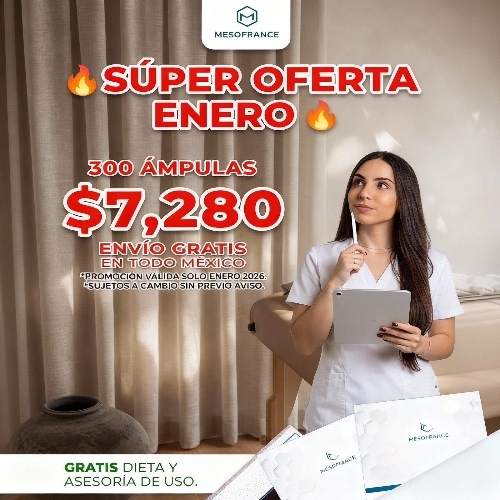 Arranca el 2026 con el inventario lleno y el costo por producto más bajo del mercado. Por tiempo limitado, te ofrecemos 300 ámpulas de alta calidad por solo $7,280 MXN. Esto te permite ofrecer tratamientos premium con un margen de utilidad excepcional.